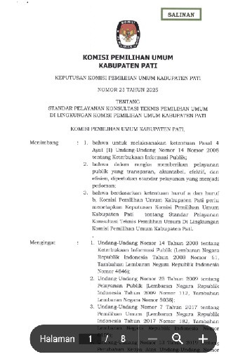 SK STANDAR PELAYANAN KONSULTASI TEKNIS PEMILIHAN UMUM DI LINGKUNGAN KOMISI PEMILIHAN UMUM KABUPATEN PATI